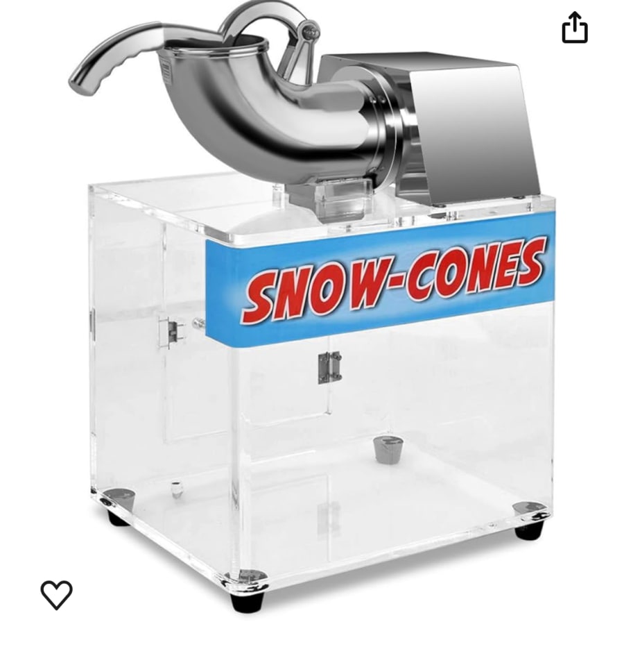 Heavy-Duty, yet lightweight, portable machine. 500lb p/hour output. Supplies include enough for 50 servings. Ice not included.